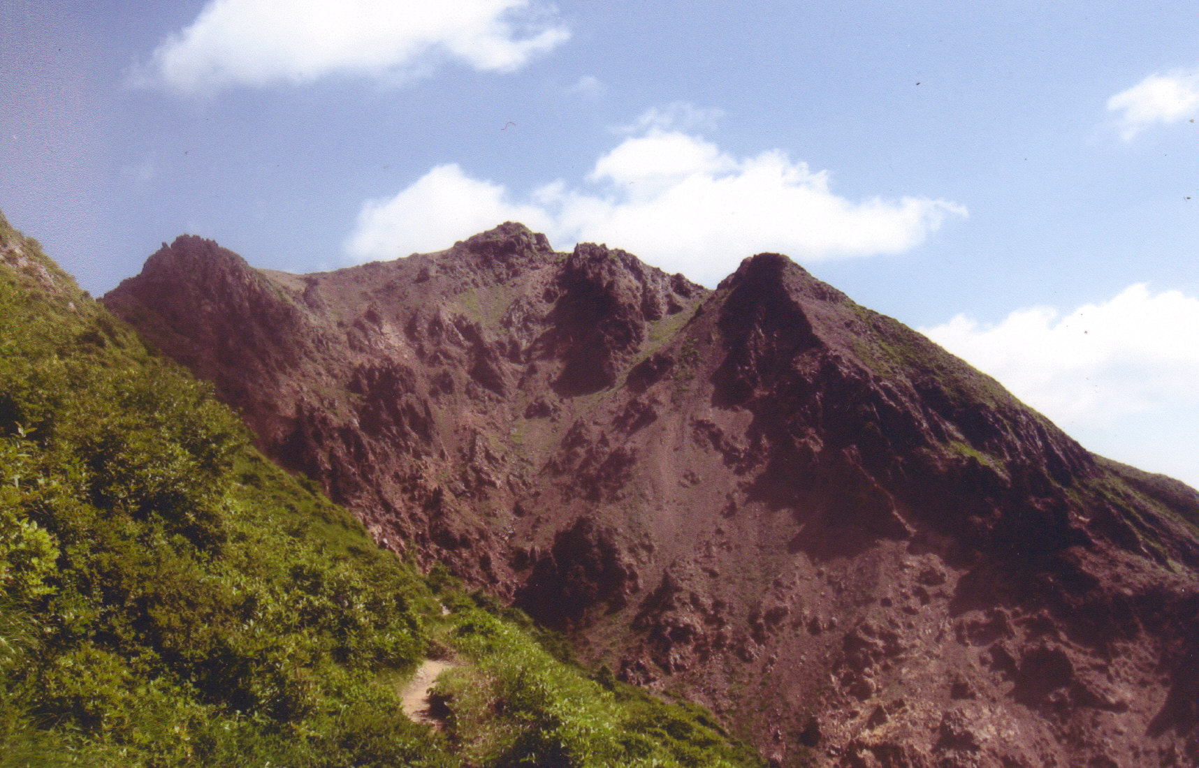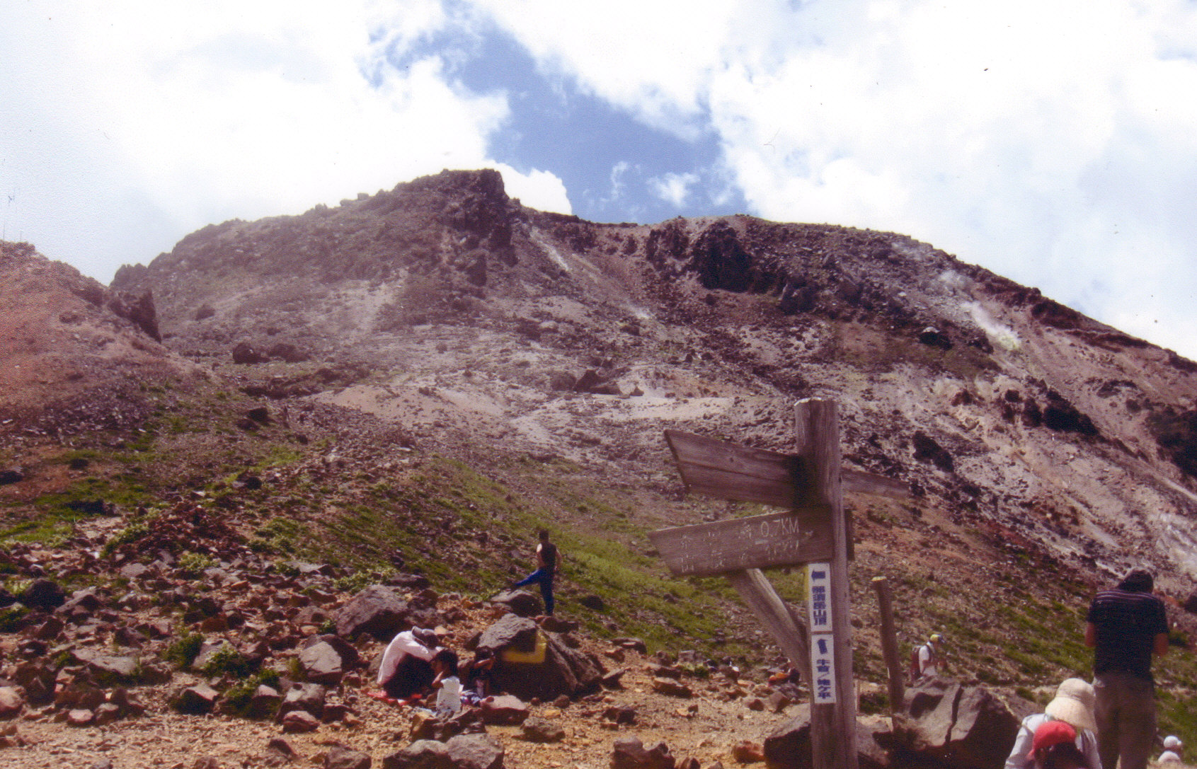 朝日岳からの茶臼岳の眺望。朝日岳の頂上には午前十時ごろ到着した。時間的に余裕があったので、茶臼岳にも登ることにした。