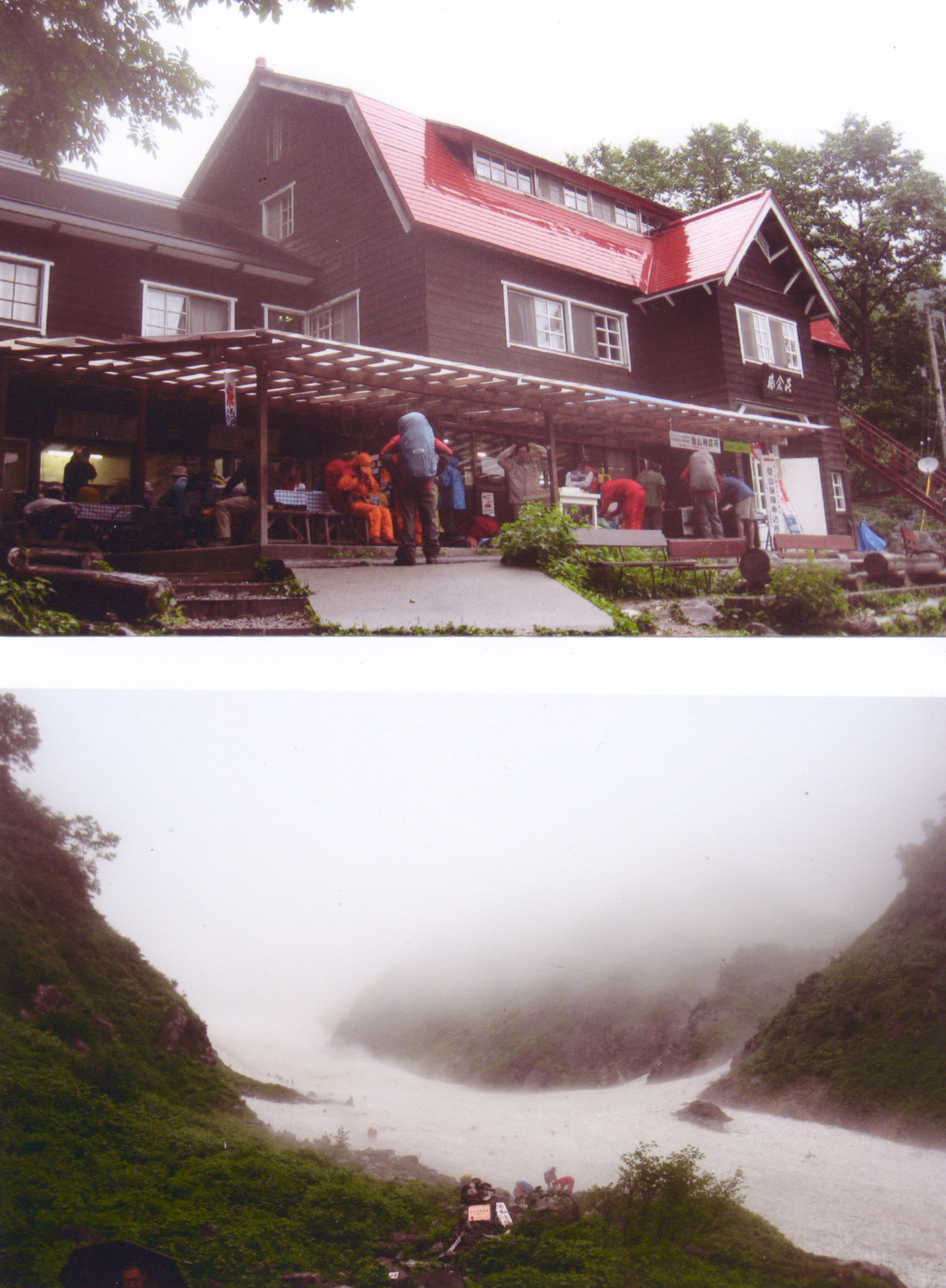避難小屋に到着するあたりから、登山は極めて危険な状態になってきていた。三千メートル級の高地でのブリザードを思い出した。登山道は谷川とかして、ものすごい水が流れている。崩落の危険と風の猛威に耐えやっとの思いで、白馬岳村営頂上宿舎に到着。全身ずぶぬれ。小屋の乾燥室に飛び込む。午後二時前に小屋に到着した。命拾いをした。雪渓上部から、村営宿舎までの間はまったく写真はとれなかった。