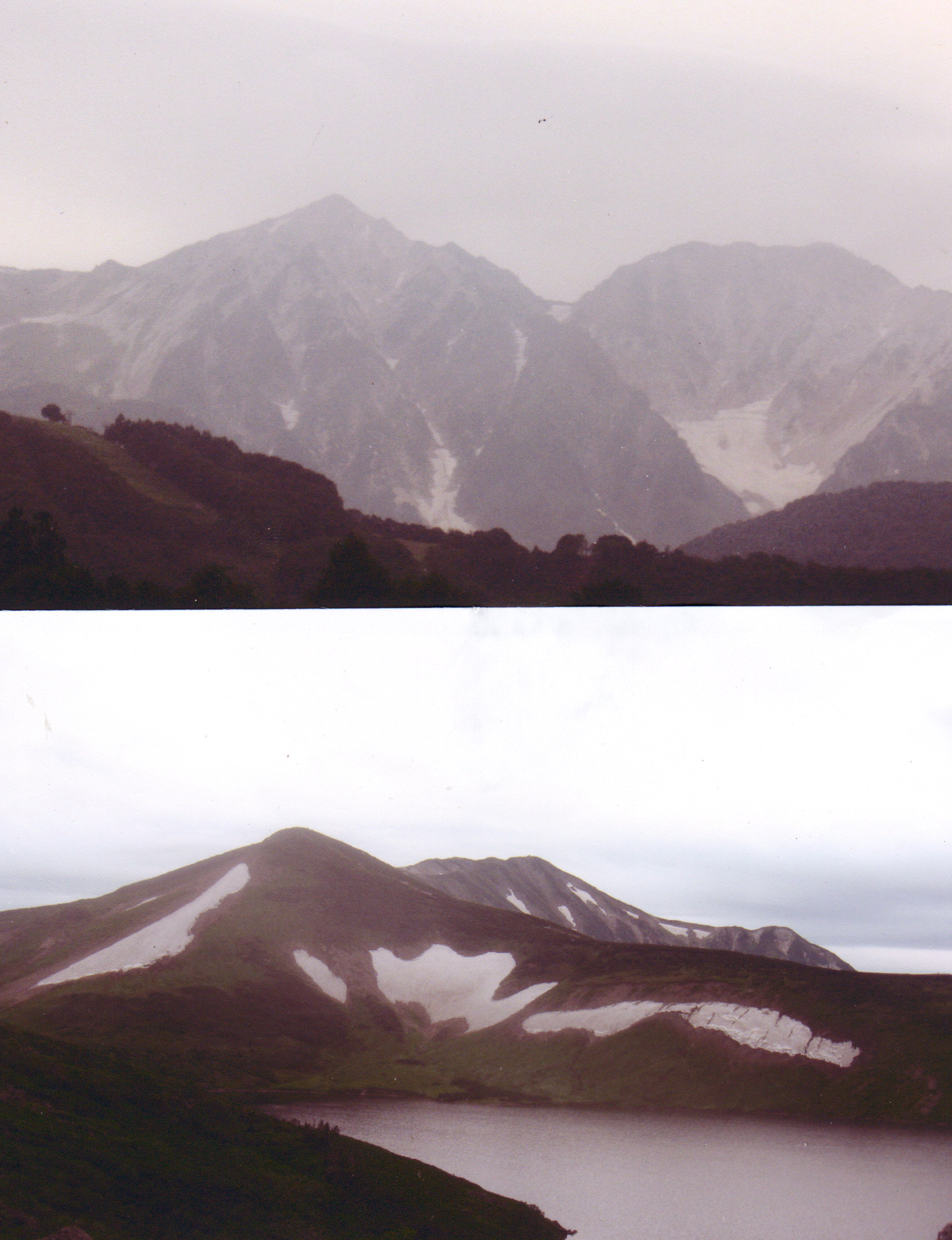 剱岳、立山連峰もくっきりと望めた。今回の取材は、一応、積雪期のための偵察の目的もあった。山の版画を作るためには、どうしても雪のある時期にこの山稜を歩いてみたい。しかし、天候にもよるがかなり困難だろう。スキーを担いで、八方ケルンあたりまで登ってみようかなどと考えた 。